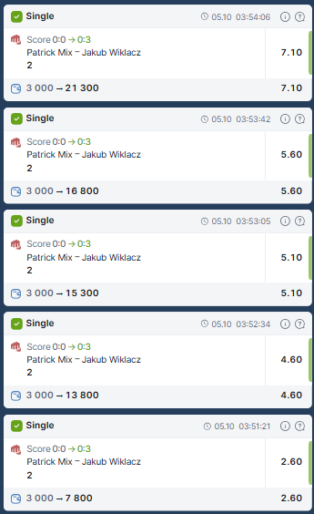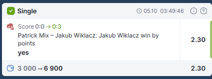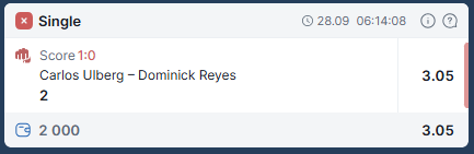 Потерял 13к, угадал тока с одним андердогом-Фиги, угадал хорошо, но поставил немного. Упустил возможность поставить на Чарльза, не знаю почему, сожаления по поводу тоже не чувствую. Странно. Не упустил возможности занести живую на Петрино на достаточно неплохо каэф на фоне того, что он побеждал в одну калитку, но из-за природной острожности занёс мало, я тока через секунду подумал, что надо занести ещё тонн 40 и линия резко поменялась назад. Тупанул. Питрино ещё дико меня подвёл с финишем в третьем, он мог финишировать и в первом и во втором но потому что дебил, он продолжал вместо добивания переть за одиночкой. Не знаю нахуя, всё что он выбрасывал по Питерсону залетало с первой секунды. В целом у меня хорошее настроение, учитывая, что я по пикам угадал МЕНЬШЕ ПОЛОВИНЫ КАРДА 13к выглядят не так уж и плохо. Кард на следующей неделе выглядит просто отлично.