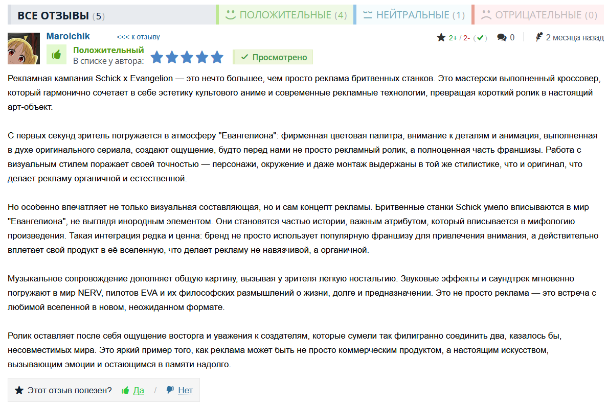 кино Посмотрел призрака в доспехах в кино. В нужном настрое был, на медленных планах витал в каких-то своих мыслях, за сюжетом старался внимательно следить, вроде всё понял в этот раз. Приятная анимация и детализация. Атмосфера и мир, конечно, интересные, чувствуется влияние на многие более поздние произведения sci-fi и не только (Матрица, Евангелион, Киберпанк, образ Бато похож, например, на Кенто Нанами из магички).