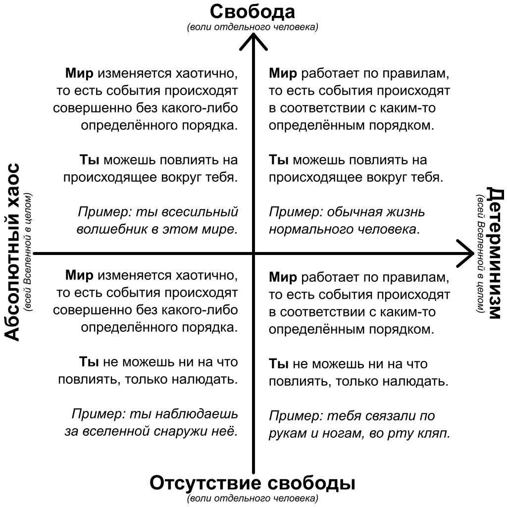 Как это можно сопоставить с сознанием человека? Допустим, ты "истинно случаен". Это значит, что твое внутреннее состояние невозможно контролировать. Заболел депрессией? Увы, ничем тут не поможешь - придётся страдать. Что-то хочется, но не выходит? Научиться не выйдет, т.к. нет никакого контроля.