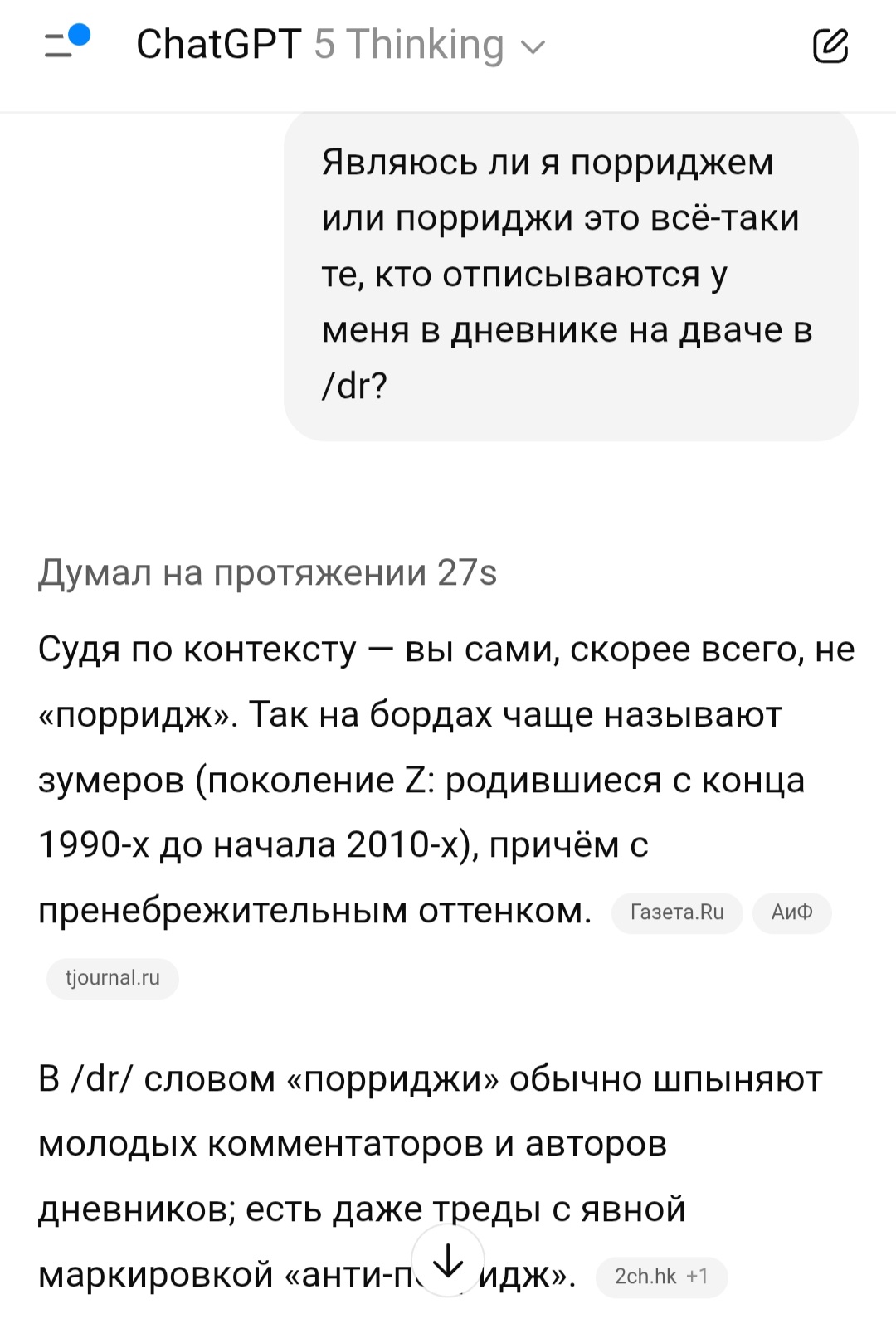 2. Клиповое мышление и инфантильность Порриджи ассоциируются с восприятием мира через короткие ролики TikTok, сториз, бесконечные "ироничные" мемы и шутки, без критического анализа. Из-за этого складывается впечатление, будто человек буквально не способен удерживать внимание на чём-либо дольше пары минут.