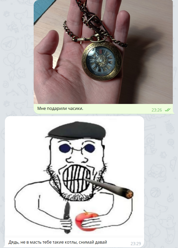 Всё! Мозг перебрал все варианты и отключился. Достаёт телефон, что-то там смотрит. Наверно у чата жпт спрашивает что делать. Набирает какой-то номер и зажимает трубку у своего мерзкого уха-приёмника. Ждёт. У меня телефон начал вибрировать - я такой расклад предсказал и поставил на беззвук. Нет ответа.