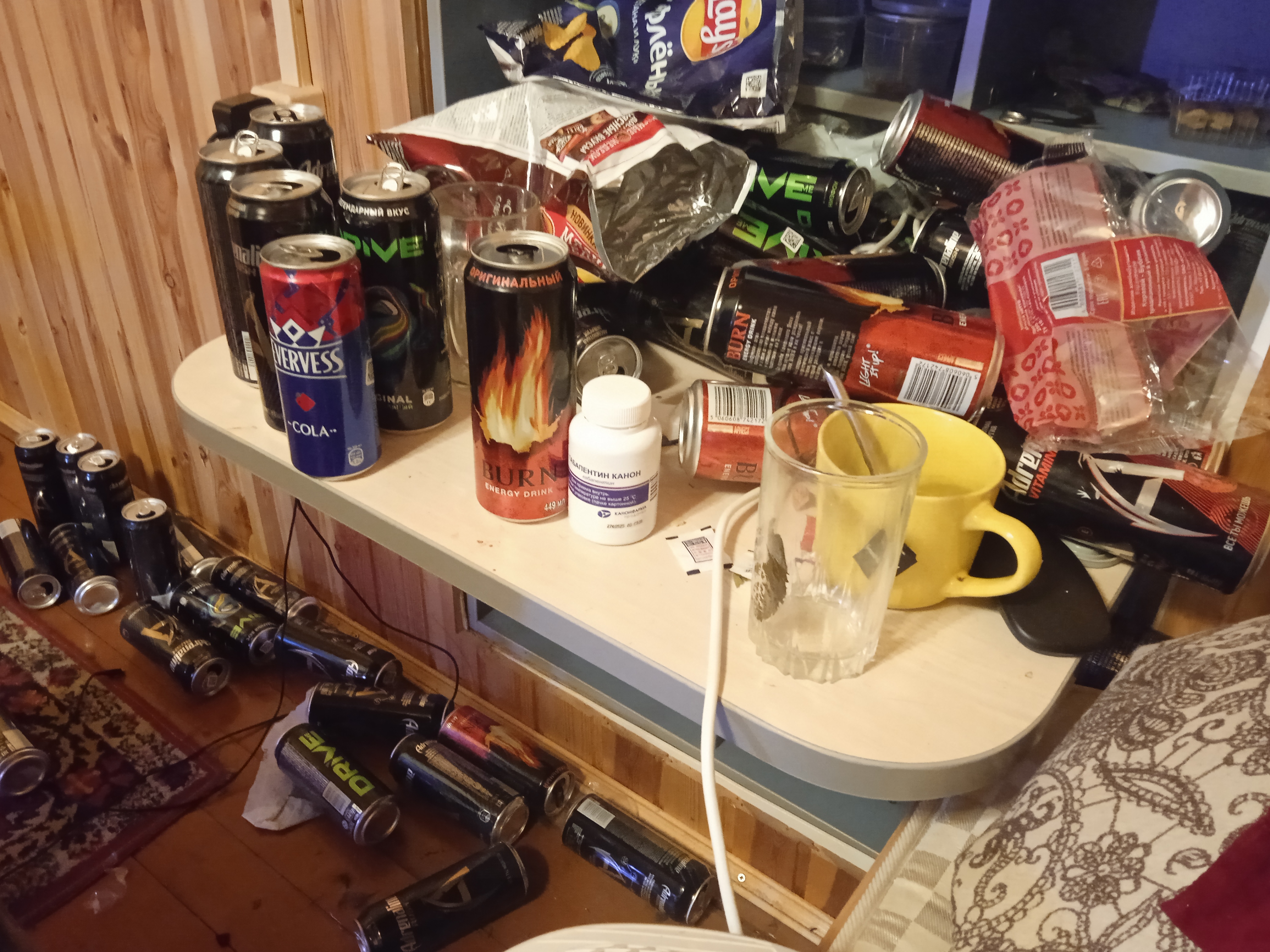 короче три дня не пил таблетки потихоньку подглючивать стало но чувствовал себя норм ну короче с батей сели выпить и когда я немного опьянел заговорили о религии и ему короче с дуру ляпнул что создал материальный мир своими мыслями я рил в это верю как в религию проста никакого бреда нет но в итоге меня заставили выпить 4 мг рисперидона ахах и я продрых всю ночь и почти целый день севодня пиздец вообще ничего не успел