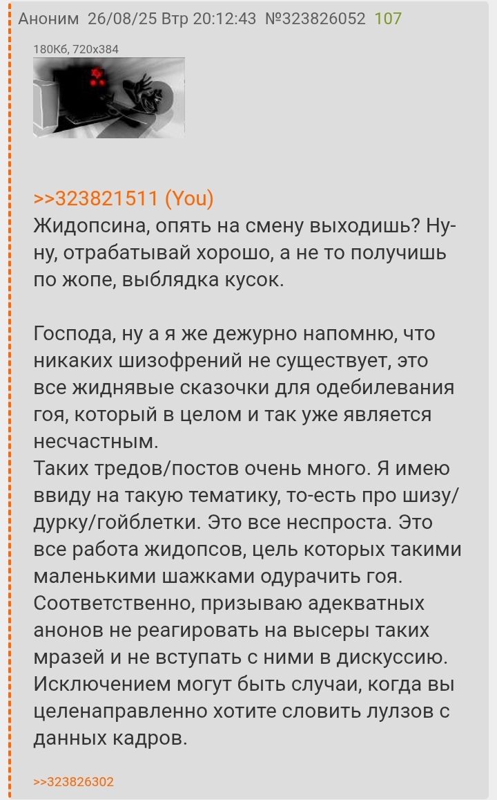 Вкатился, интересно было почитать, взгляды и мировоззрение интересное. Молодец, что не сдаёшься и продолжаешь развиваться в творчестве, работаешь. Религиозные взгляды тоже уважаю. Я в /б с тобой общался и о своих психозах рассказал, они более примитивны, в силу моего более слабого интеллекта, грубого восприятия. Но в целом мы друг друга понимаем более-менее, раз у нас обоих такой диагноз. Я оланзапин принимаю, риспиридон очень плохо переносил, ОКР он мой усиливал, мысли в бошке заедали и повторялись бесконечно.