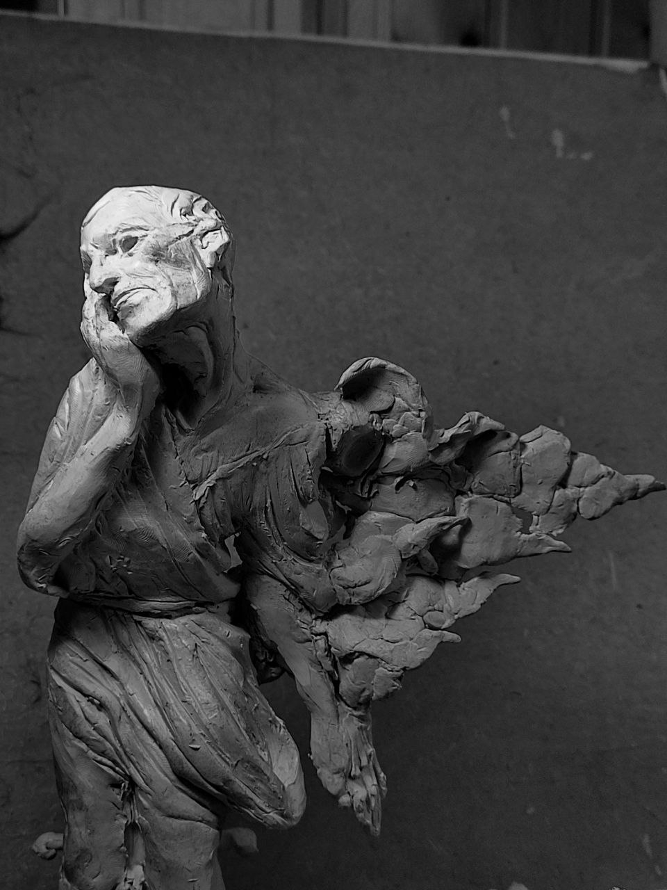 процесс работы над узником ноги в колодках пока не видно тк плохо пролеплены маскимально нада как-то до конца недели закончить ну тут по всему надо пройтись пару раз ну и главное и стаю птиц вылепить с лева