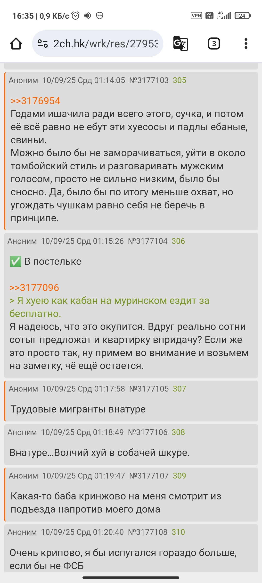 Ну ночью помимо рофлов было оскорбительное сексуализированное насилие. У меня вибрировало очко против моей воли. И были какие-то щитпосты мешающие. С утра были токсы, плюс я уронил бутылку воды в магазине, но именно искусственно, не свойственно мне уронил, поэтому и записываю в их потравливание. После написания поста о феминизме не так поставил ногу и ударило прямо по ушибу на левой ноге. Параллельно есть небольшие подвижки в восстановлении личности. С утра ещё была искусственная эротическая фантазия, что я рассматриваю как сексуальное домогательство. Ещё я им по дороге до работы и несколько минут назад говорил им о том, насколько их травля нелепа и насколько они утнера, им было на это похуй, потому что воспринимали как нейросетевую речь. Я напоминаю, что их деятельность - это угроза всему человечеству, потому что это утнера с такой властью. Либо против них будут применены меры, либо будет хуже, а потом всё равно придётся принимать меры.