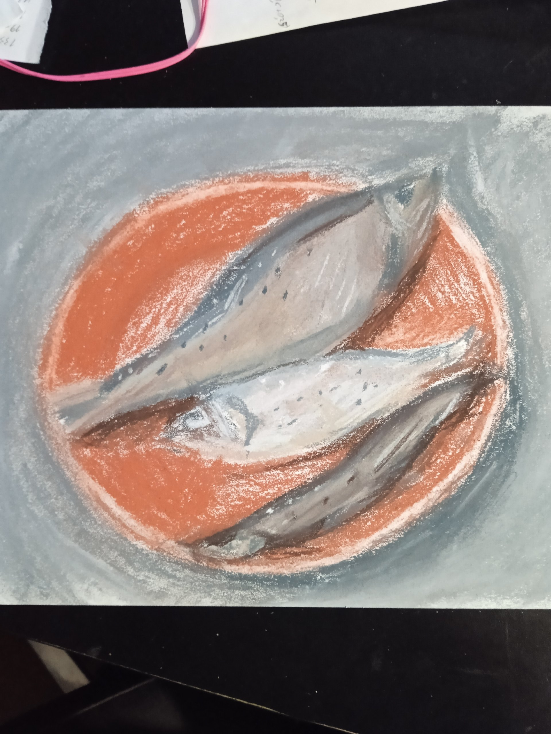 сегодня ходил на занятие по рисованию, натура мерзко воняла сушеной рыбой(потому что ею и являлась) как же охуено рисовать пастелью прям кайф кайфовый, надо будет докупить набор побольше на 40 мелков чтоб ваще было прям пушка огонь