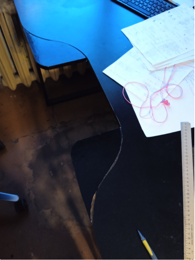 днем сколхозил подставки под локти, потому что вырез в столешнице был слишком широкий и по сути не имел никакого смысла. в остальном бесполезный день