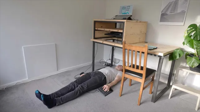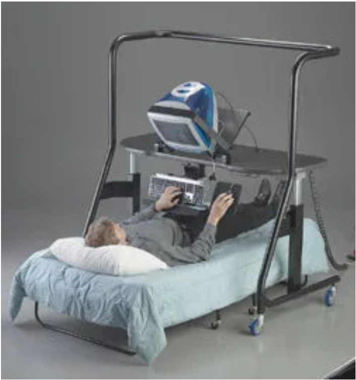 Надо выгрузить рой мыслей. 1. Я пробовал вкатываться сидя, я пробовал вкатываться на ходу, теперь надо попробовать вкат лёжа. Хочу сделать себе рабочее место типа пикрил. Но вместо стола будет конструкция их пвх-труб. В идеале нужно чередовать, но так как я буду курьерить проблема с малоподвижным образом жизни решится. Сегодня после обеда надо откликнуться на вакансию, дальше тянуть нельзя.