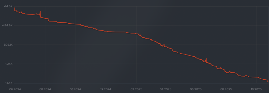 Вот мой общий график на этом сайте с 2021 года (ставки делаю с ~2014, почти каждый день). Поначалу я неплохо шел, но чёт покатился вниз. Теперь намереваюсь строго в горочку