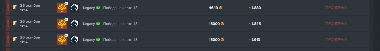 Мои ошибки за вчера: - ставил на доту без основательной аналитики - на лаки; - ставил на tier3 cs, не ориентируясь на просадки КФа; - сделал тильт-додеп.