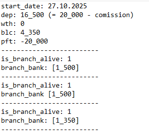 Суточный лимит на депозит: 5 т.р. Пороговое значение баланса на ветке: 50 т.р.