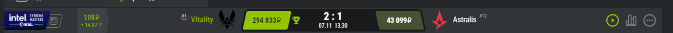 взял в лайве бразильский CCT. сориентировался по просадкам. KRU вели 7-4 за атаку на Нюке. лёгкие +2к