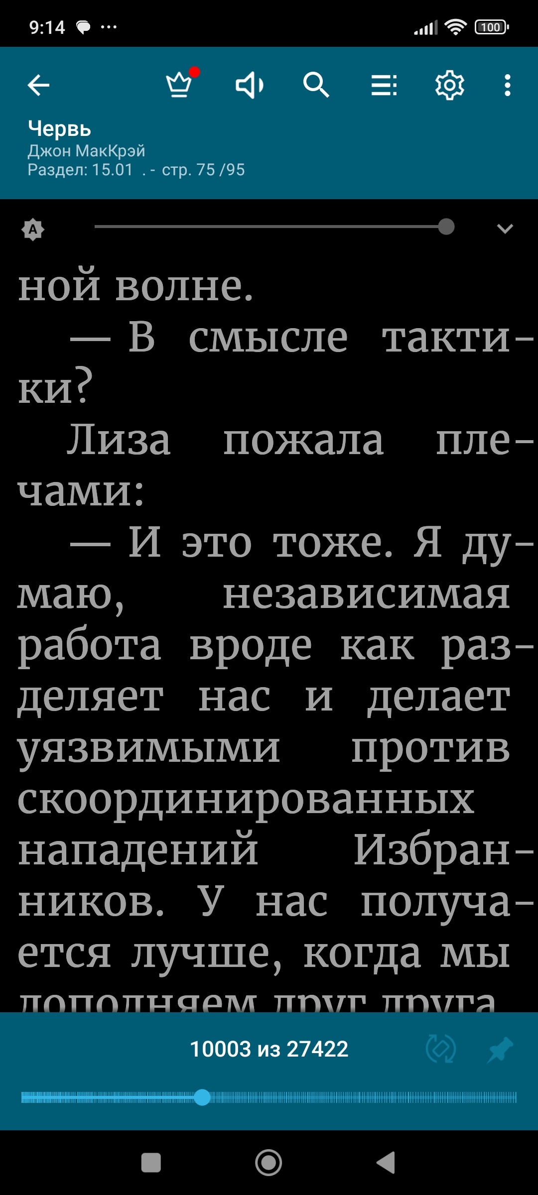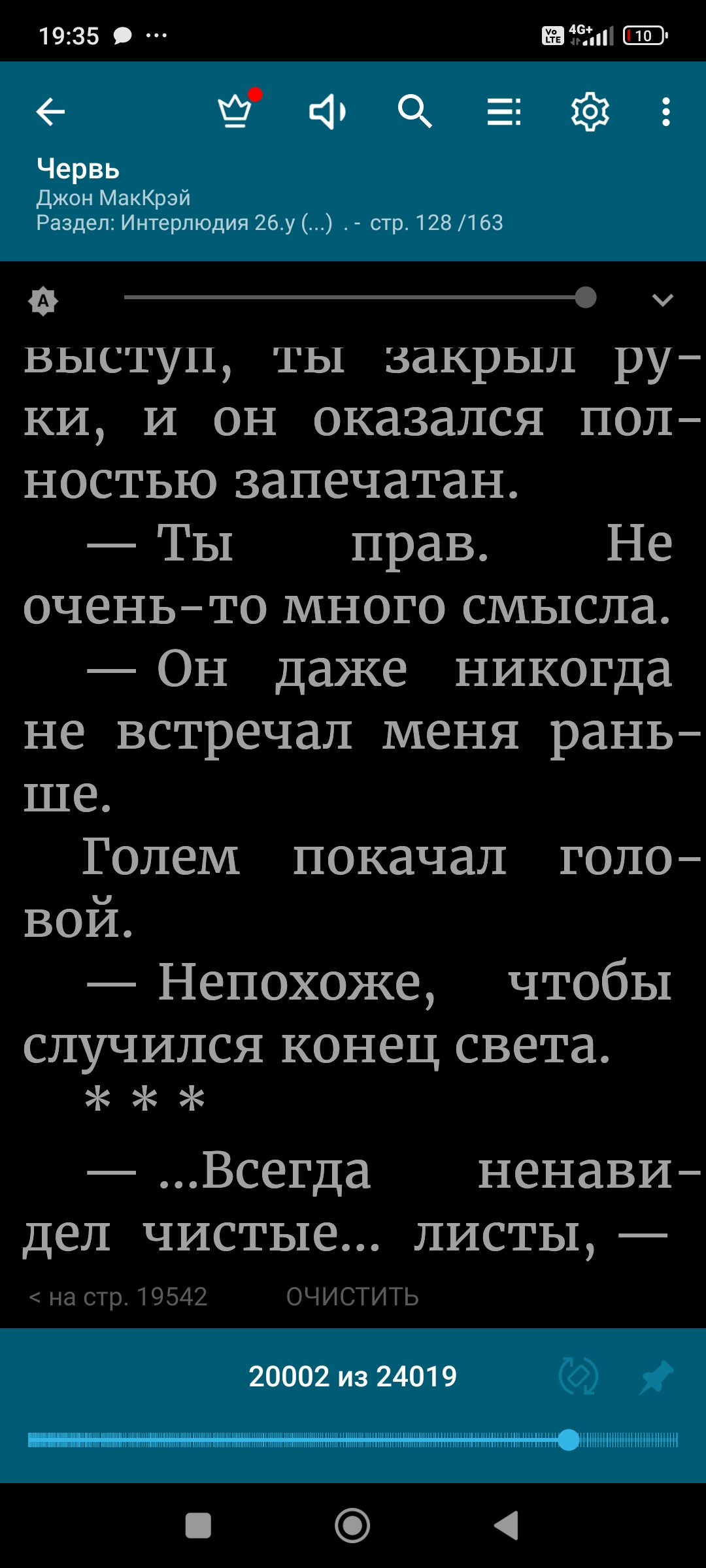 >>828649 Забыл добавить, так как постоянно отвлекаюсь на борьбу с тупостью. Ебанул аж почти 2000 страниц(!!!) червя. Также неплохую отечественную фантастику прикладываю - на удивление не хуже Ведьзмина , которого я не большой фанат.