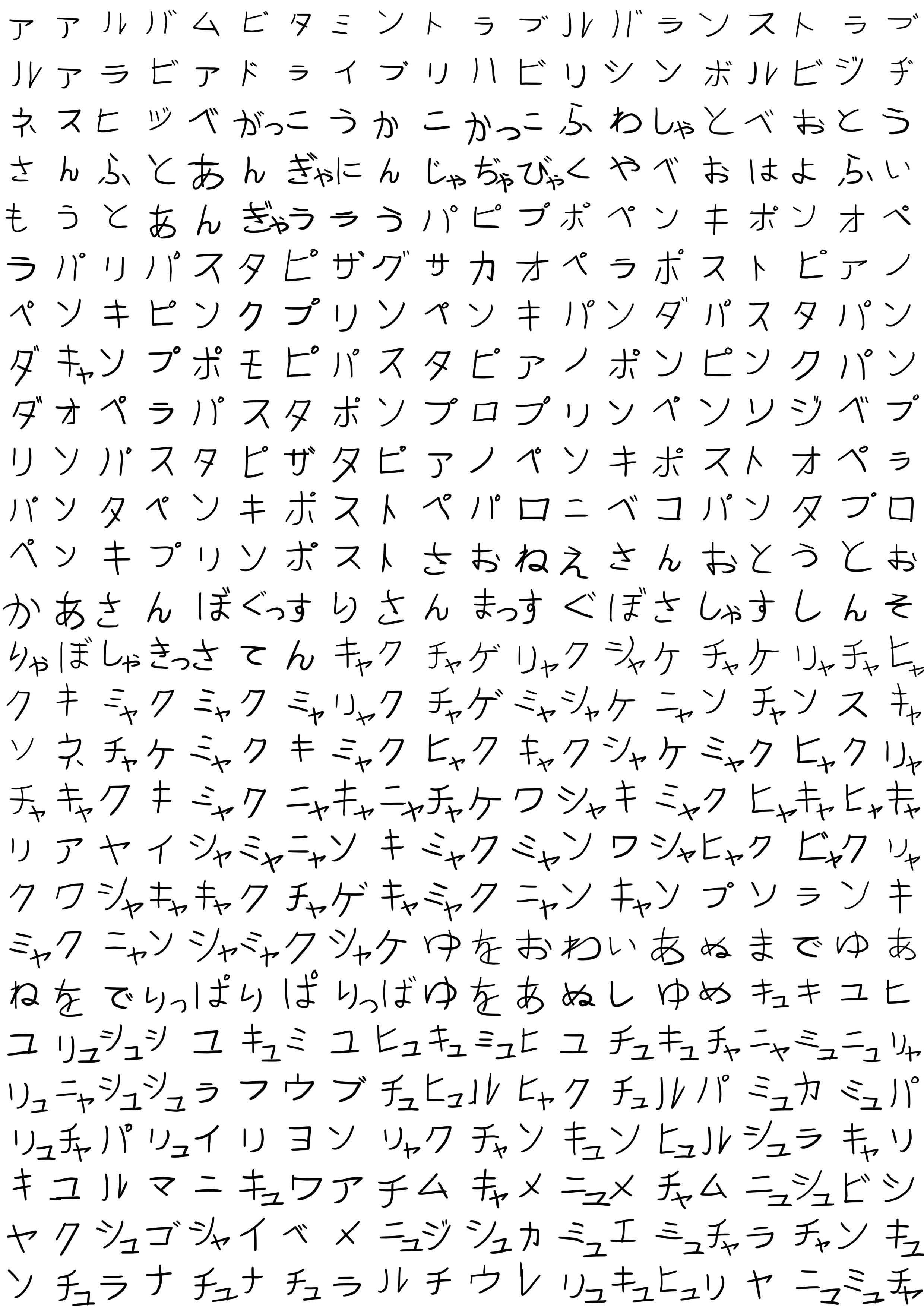 Прогресс со вчера. Сегодня, без повторения, провёл случайный диктант по звукам. Способ как и вчера, у меня выписаны по номерам файлы с озвучкой нужного слога, я взял случайный генератор чисел, получил список из 46 штук без повтора и начал по очереди воспроизводить звуки и записывать. Смог вспомнить всё. Но именно по звукам приходится концентрироваться, на автомате не все звуки вспоминаются, некоторые прям секунд по 10 приходилось вспоминать. Но вспомнил и вроде ничего не перепутал, но не перепроверял, ибо лень. Снова прошёл тест на хирагану и теперь со спокойной душой на катакану. Визуально все символы вспоминаю моментально в обоих канах. Дакуоны и хандакуоны, насколько понимаю, у хираганы и катаканы идентичные (за редкими исключениями вроде v из звука u), так что можно сказать что обе азбуки я выучил, теперь остаётся их усердно повторять и закреплять.