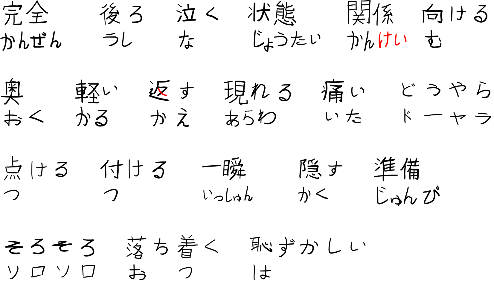 Сейчас проверил 7 кан, которые я не смог вспомнить и мысли "ну как я мог их не вспомнить", однако факт. Сами каны я легко прочту, а вот по звуку я их не смог вспомнить. Значит нужно усерднее повторять.