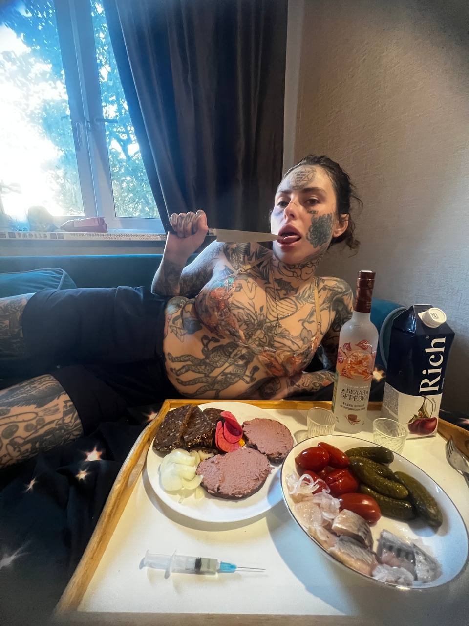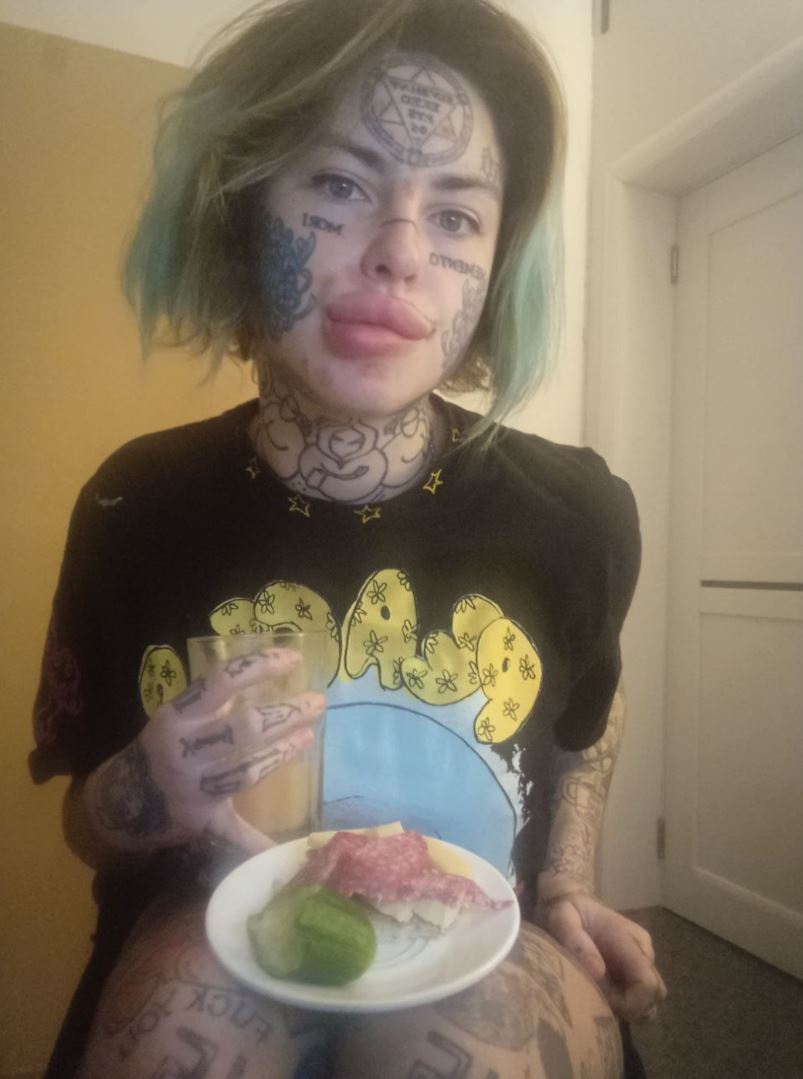 >>786944 седке есть куда стремится) полина фейс - это ходячий обоссаный ковёр - все татухи набиты вразнобой, в разное время, разными мастерами, наслаиваются друг на друга и чернила из глаза сочатся...