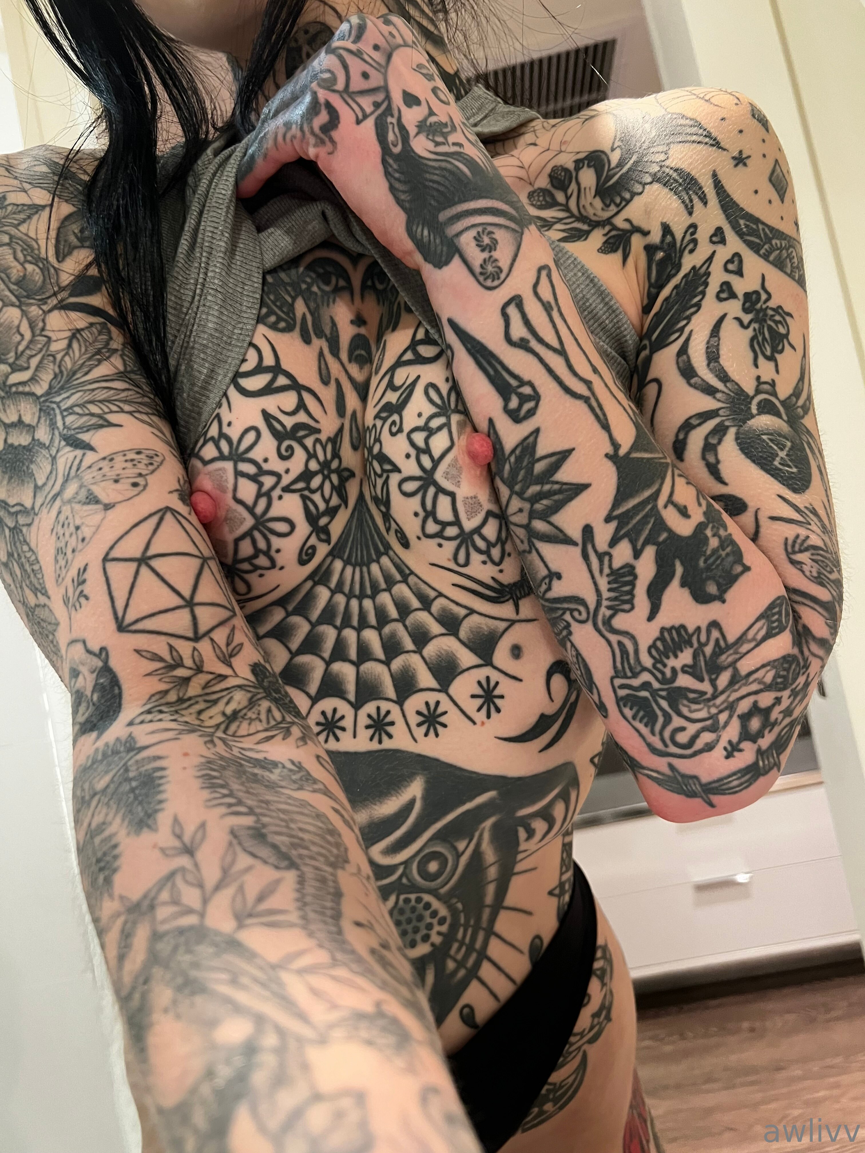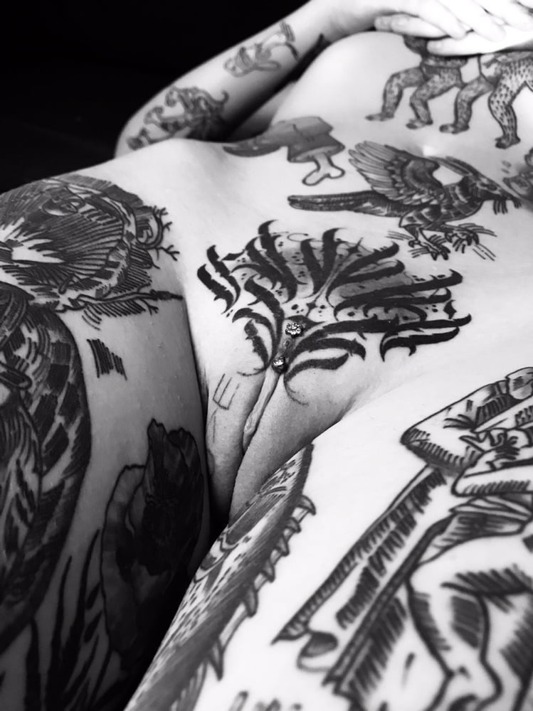Сам трахался с полностью забитой девахой - обе ноги, рукава, грудь живот спина шея - просто холст блять. Ебалась как валькирия