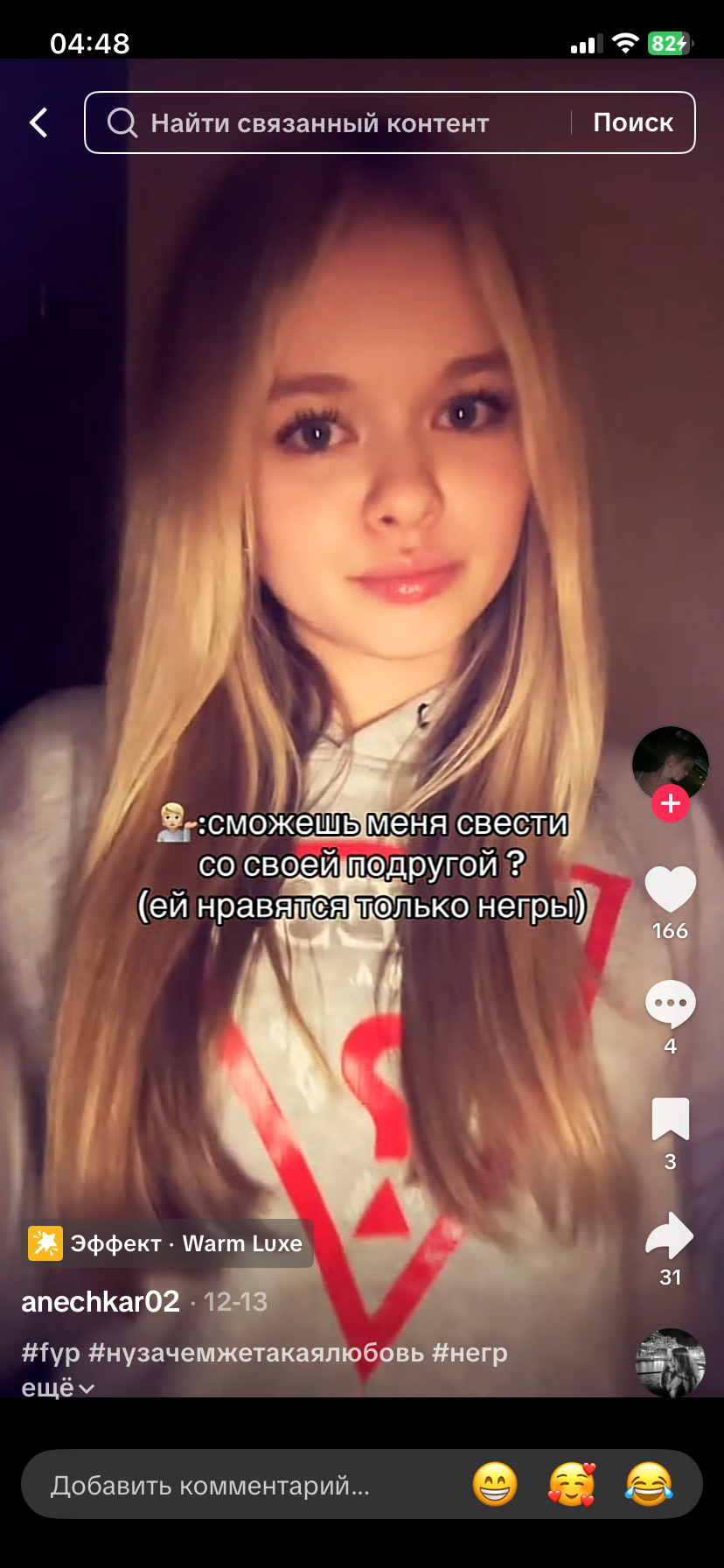 Я понимаю что в этом треде дохуя тех, кому это нравится и был бы за, и скорее всего подумают нахуй я сюда это скинул. Но одно дело скинуть сюда древний видос с шлюхой или sexwife, а другое когда в тик токе такая залупа. Стало просто интересно, неужели белые женщины настолько ебанутые?) Наши на чм 2018 все показали конечно, но пиздюшки… и эти аккаунты с названиями про черных - либо это нац куколды фейки, либо заказ евреев, либо реальность. Все равно контента нет, решил скинуть для обсуждения