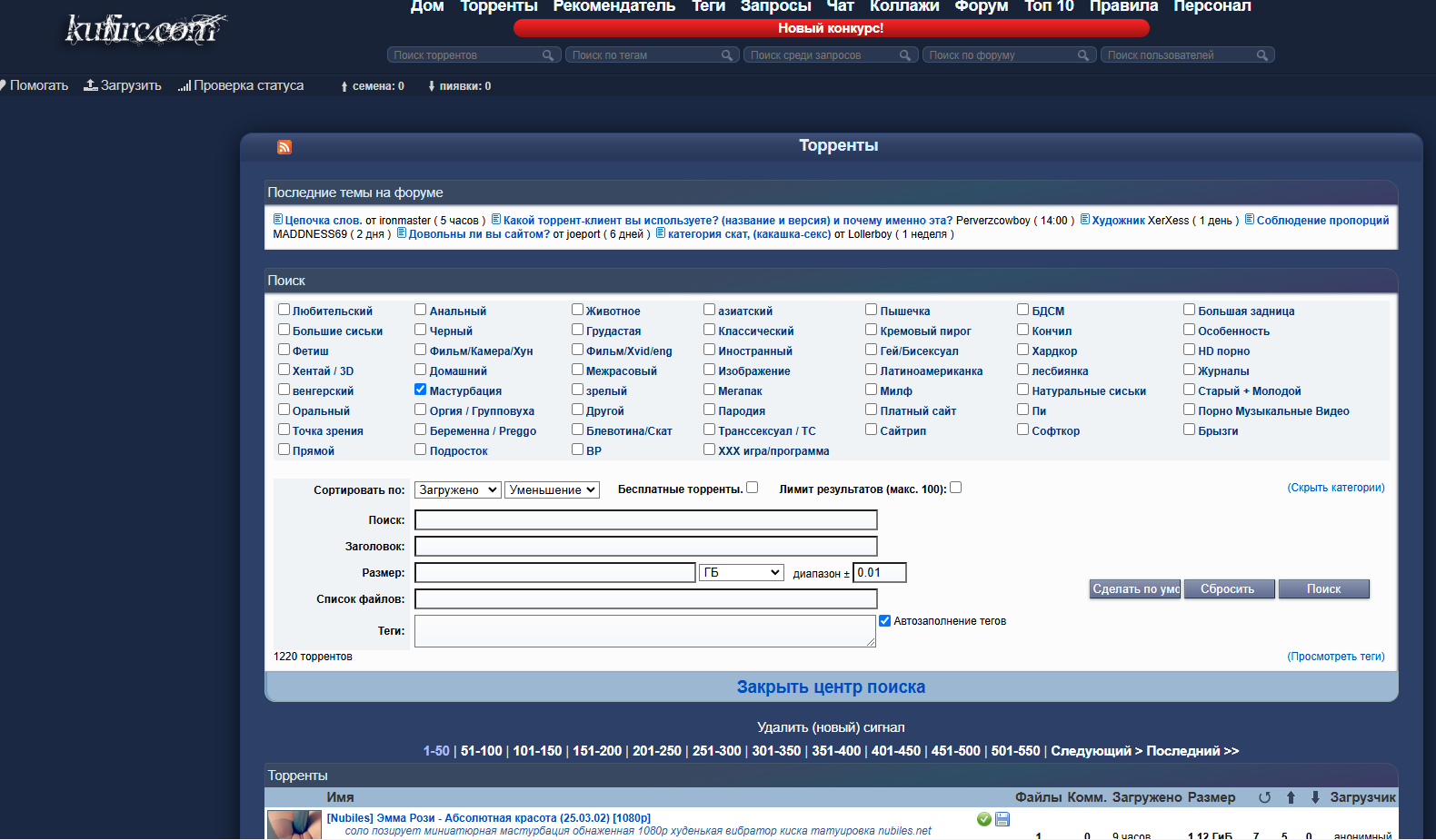 >>778469 (OP) Открытые Порнолаб русских Больше ничего живого нет. Закрытые Эмпориум зарубежный закрытый самый крупный кефир венгерский торрент трекер там тоже закрытый, но нередко открывают регистрацию ( в основном зоо прон там выкладывают). Других известных порно торрент трекеров считай,что нет. Либо закрытые в которые хуй попадешь. Либо мертвые на раздаче по нулям и новых релизов нет