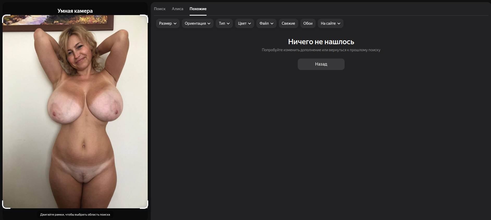 Яндекс охуел что ли? Почему ничего нет? В настройках поиск без ограничений. Я знаю, что её ещё постили, но я хотел именно похожих милф найти. А тут нихуя.