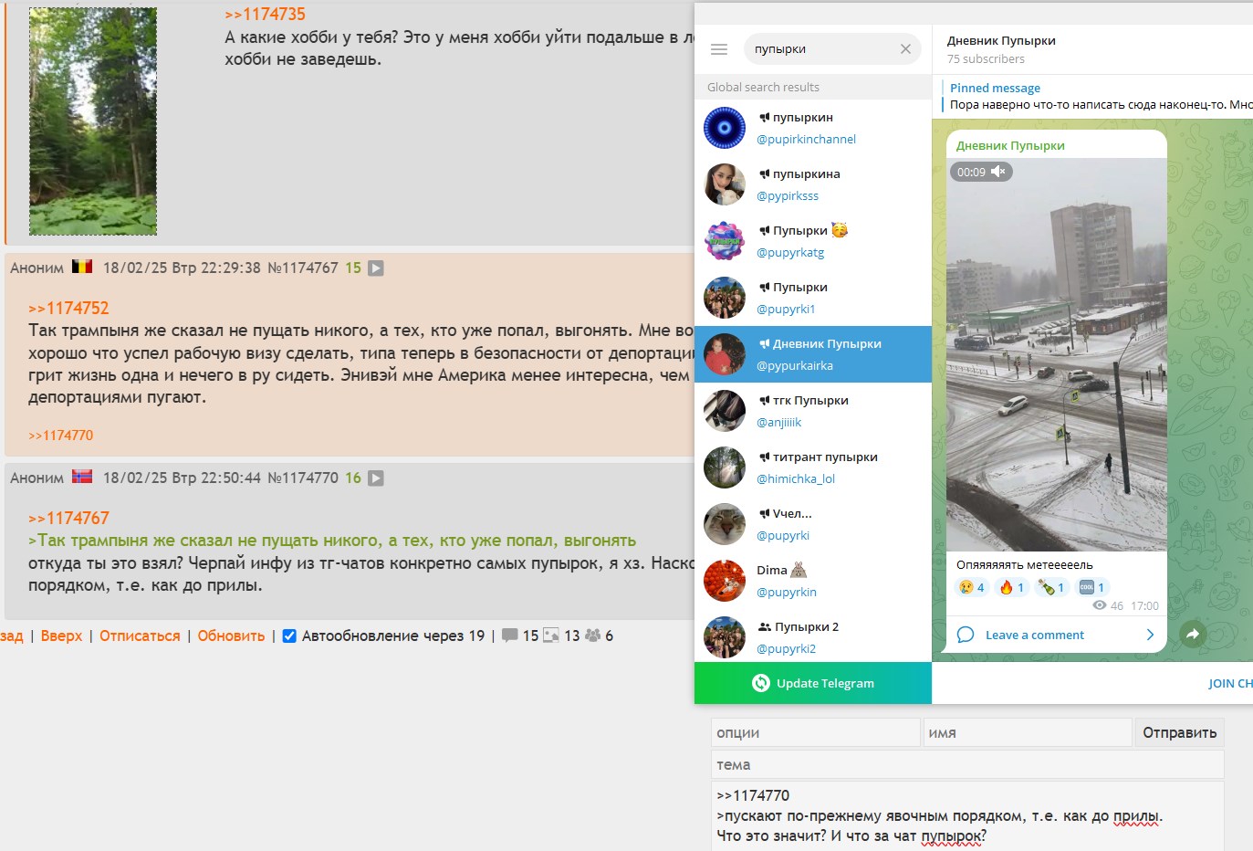 >>1176307 >не выдает В смысле даже если не одобрили, то нет обязательной депортации? >>1176315 >в конечном итоге из леса его выпиздили Ну этот тред давно очень же был, так что я не очень помню ситуацию, в которой был тот самый лесной шиз. >Если хочешь жить нелегально Ну вообще нет, просто мысли появляются типа "what if". Вообще для меня убежище по ходу единственный рабочий вариант, но даже кейса нет пока. И это не потому, что я на самом деле сторонник власти, но из-за того, что боюсь бухтеть чтобы на бутылку не присесть. Ну и пынямаю, что даже сиссинги массовые у навального были бесполезны на практике, не говоря уже о всякой мелочи типа одиночных пикетов.