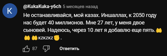 >>1175028 Я не думаю, что у них с этим будут проблемы, климат там лучше, чем в большее северной РФ. Под любым роликом о достижениях Казахстана, например в части демографии, я вижу какой-то плотный этнопатриотический угар.