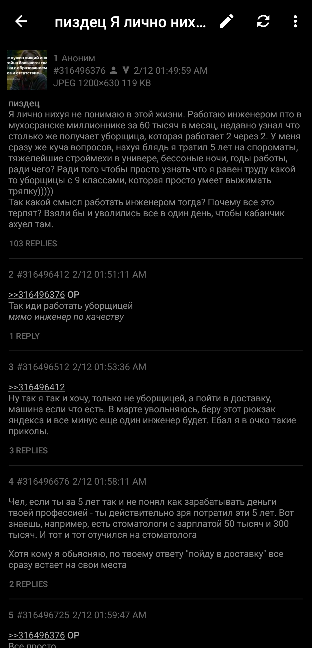 Ты поменьше слушай. Этот долбаеб живёт в подвале по цене комнаты