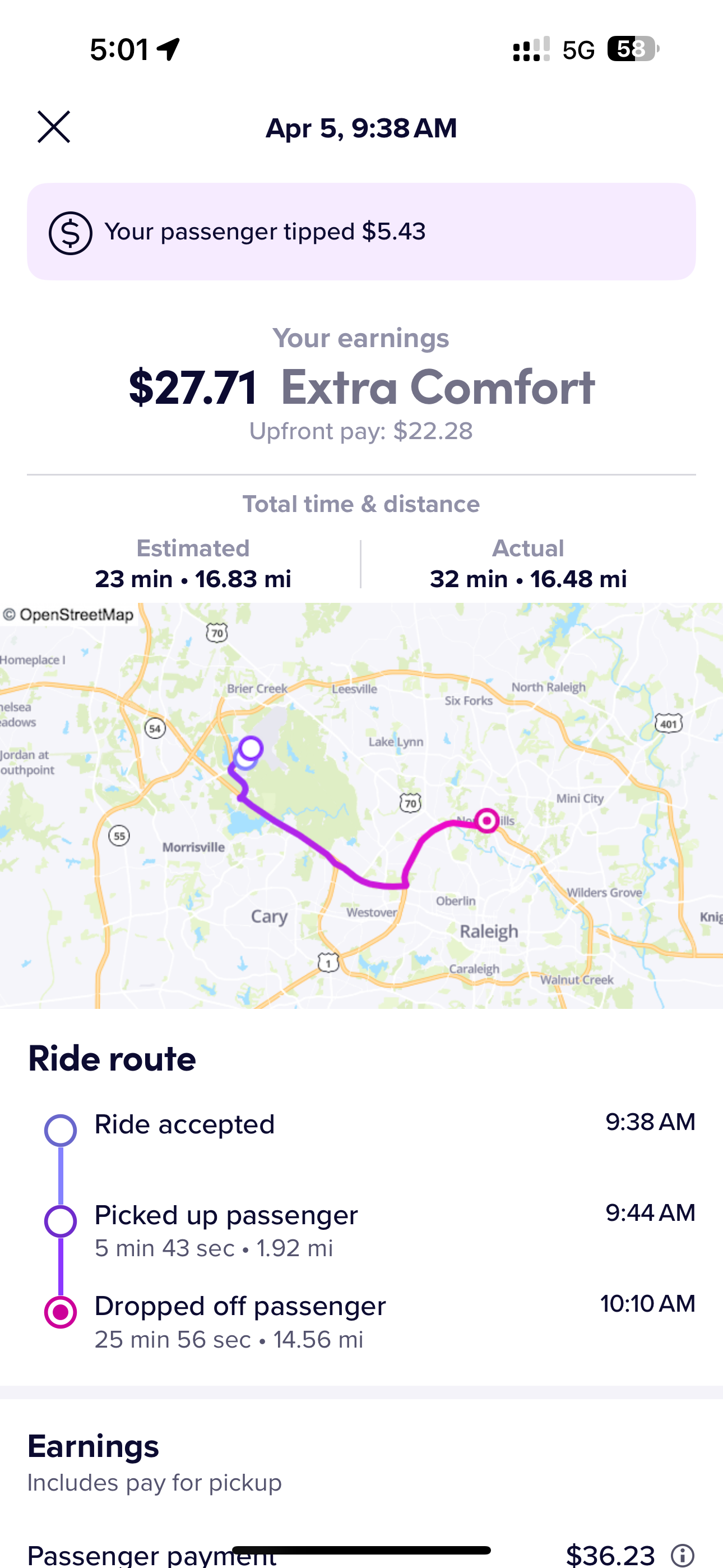 Но: ездить на тачке умнее. Посмотри на его время. Он мог так хоть один заказ в пробке стоят. И получил бы 22 за час + за мили.