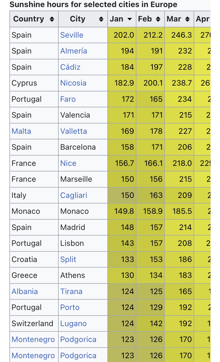 >>1184143 >>1184129 >>1184127 >Ряя погода лучше чем в клятом пидере, вот табличка >Но вот по твоей же табличке у тебя дождей даже больше >Только выиграл! Вива Испания!