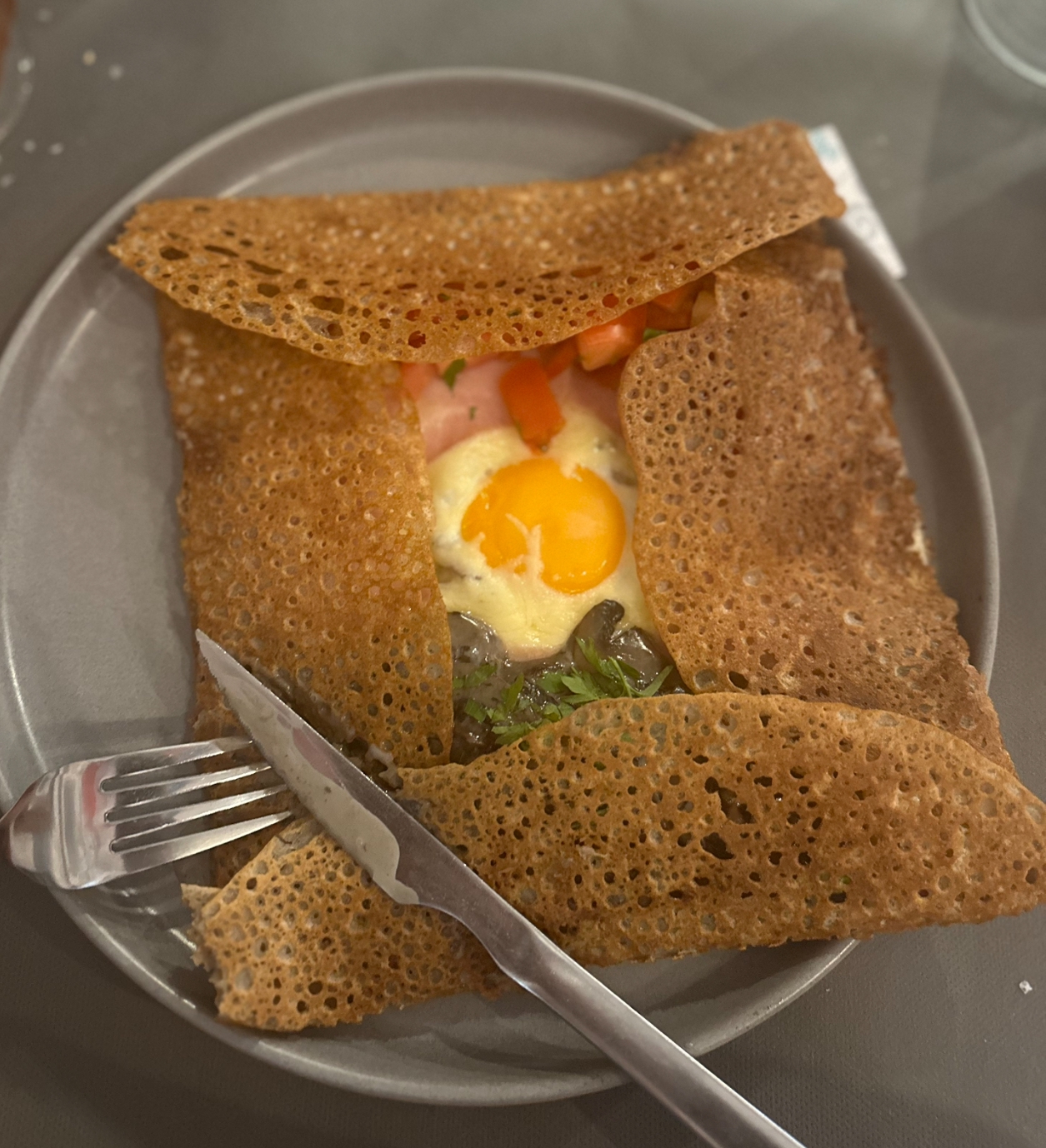 Намыв, возвращаясь к вопросу о твоих извращенны вкусовых предпочтениях. Вот, я снова в вашей дыре. Среди прочего заказал блинчик. Он хоть и бретонский, но почти как питерский, аки твоя бабушка делала. Без ненавистных тебе омаров да устриц.