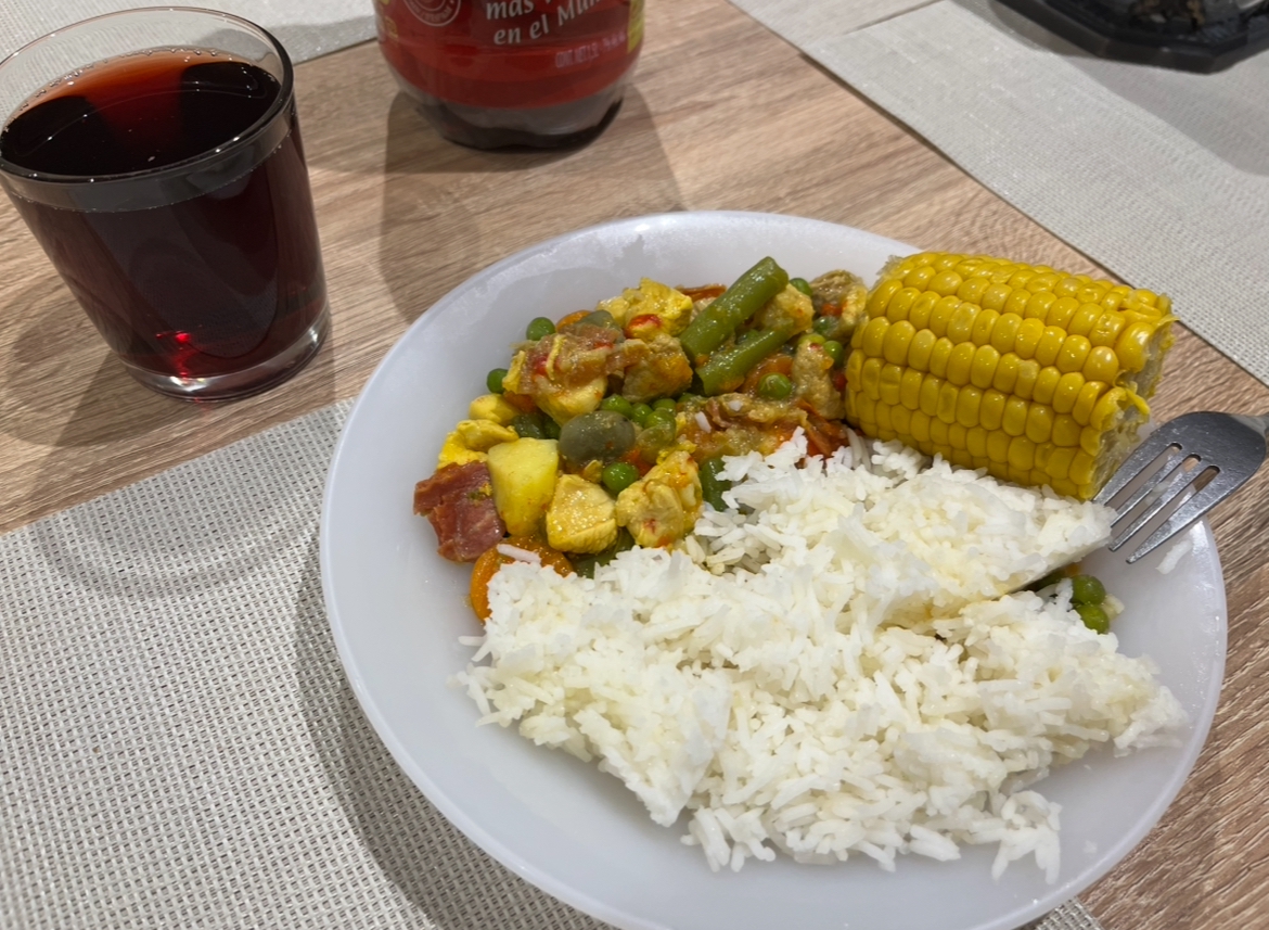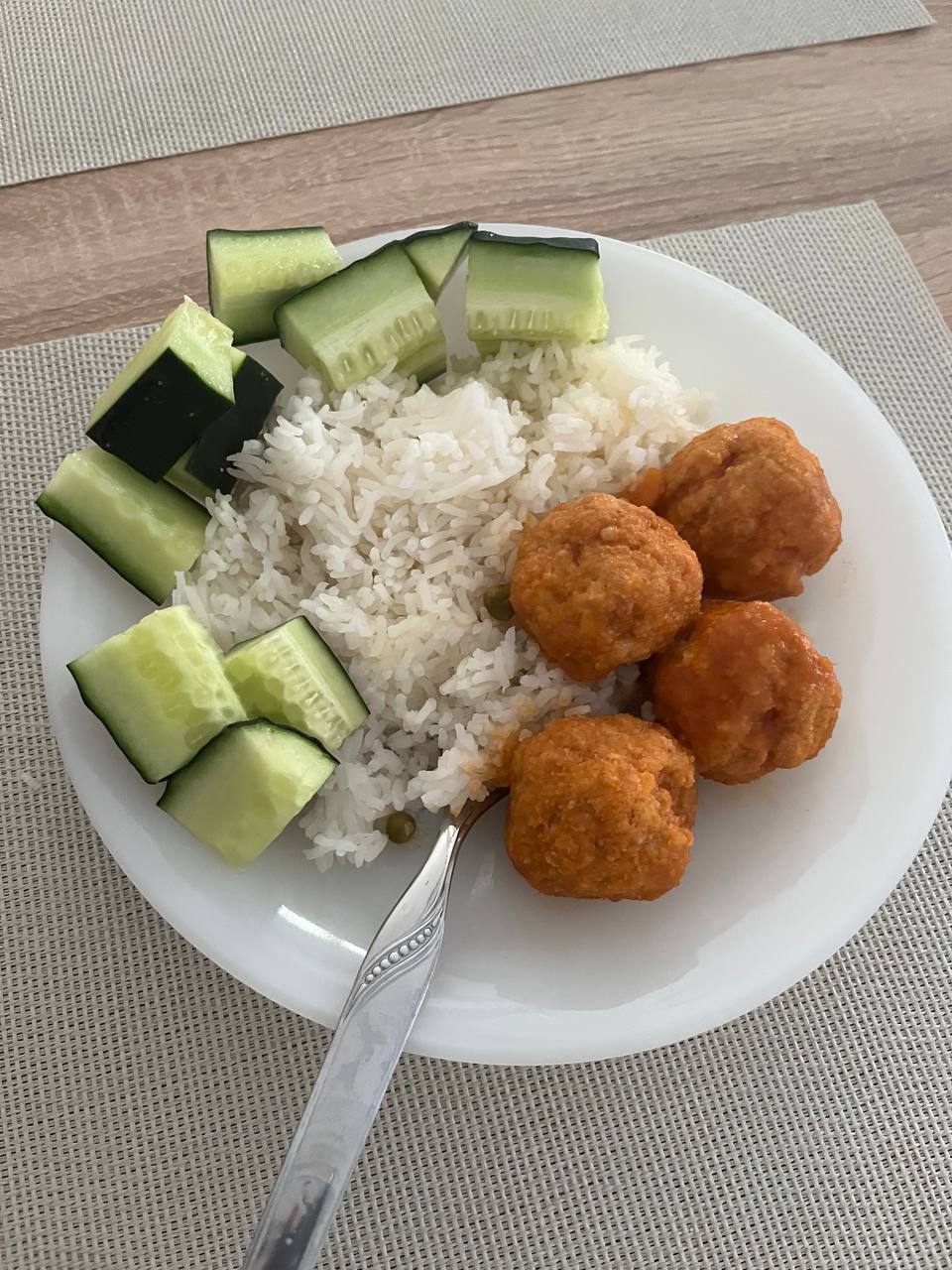 Вот я сегодня купил в мясном у семьи которая сдает нам квартиру уже готовую еду. Я не знаю как оно называется но это астурианское типичное хрючиво. Вот я рис отварил и заебумба. Обычная домашняя еда. По сути тот же гуляш что я дома готовил. Еще тефтели купил вот такие тоже популярные тут как я понял. Тоже нормальные. Ну для вас это все будет пидарашьим хрючевом. Я в общем то не возражаю.