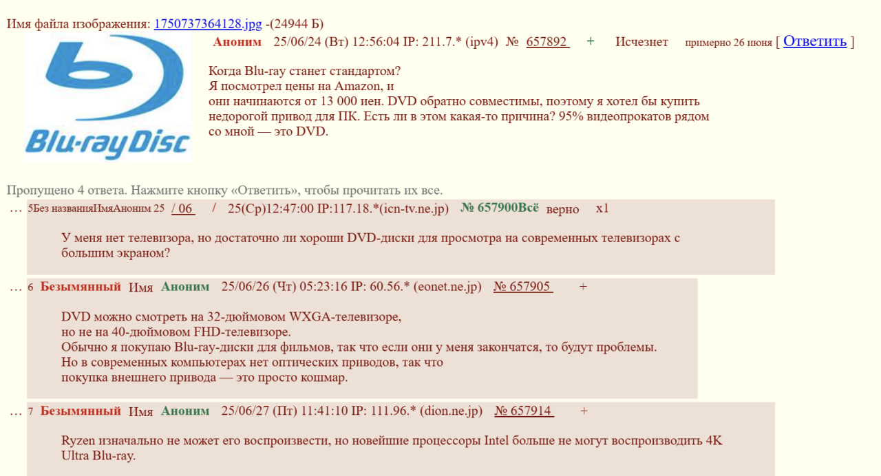 Трусонюхия, итоги. Аноны на местных двачах спрашивают когда же блюрей диски в японии станут стандартом, ибо в местных салонах видеопроката везде продают только dvd диски.