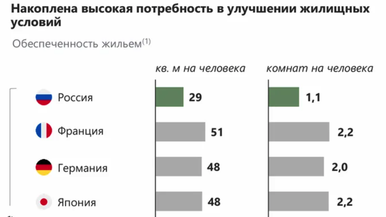 В Европе и США такое невозможно в принципе. Там статистика показывает реальную жилплощадь, приходящуюся на среднего человека. В западных странах высокие налоги на бесполезную недвижку, поэтому её моментально сливают, чтобы не платить их.