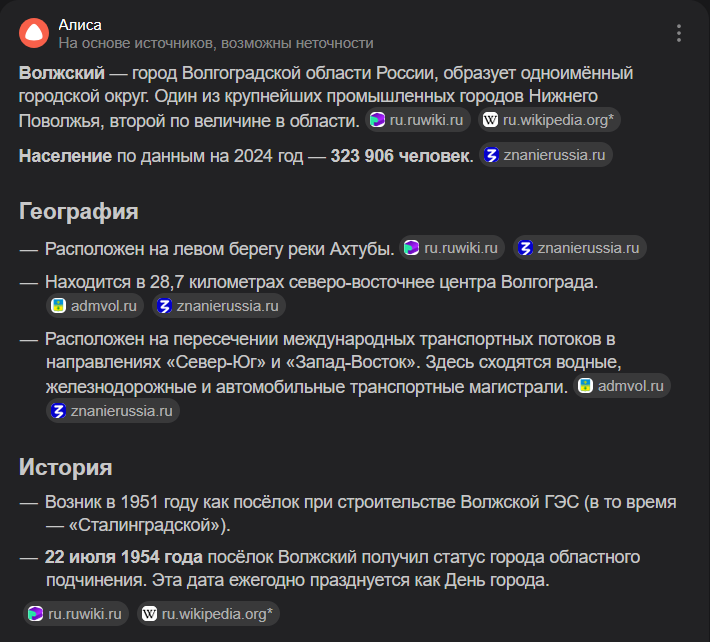 а невестка моя с волжского. был в этом городе раз 5-7 в течении последних 5 лет и он мне очень понравился. за ним будто бы следят больше чем за ростовом, само его градоустройство мне зашло, есть всякие развлекухи, несмотря на то, что город маленький. и это я тоже считаю плюсом. в деревне жить не хочется, конечно, но и миллионники мне не особо заходят. так же привлекает то, что до обл центра ехать пол часа. конечно, можно было бы поселиться в аксае или батайске под ростовом, но это трущобы по сравнению с волжским