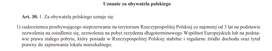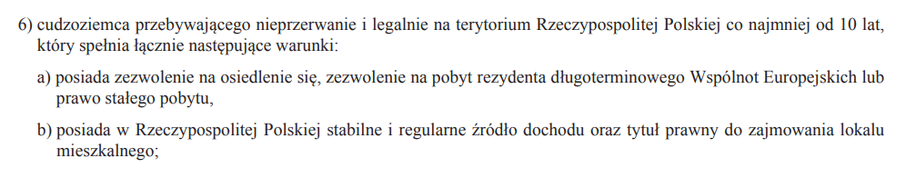 Однако в той же статье имеется пункт 1.6, который устанавливает высидку 10 лет с момента первого попадания в Польшу хоть на долгосрочной визе, а сталый/резЕС статус по букве закона требуется не за весь период, а на момент подачи на гражданство.