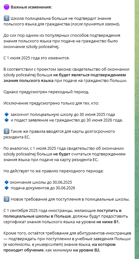> абсольвентам? Абсольвентам полицеалок предложено соснуть бибу с 1 июля 2025 (полученные позже св-ва об окончании полицеалки перестают засчитываться за языковой экзамен).