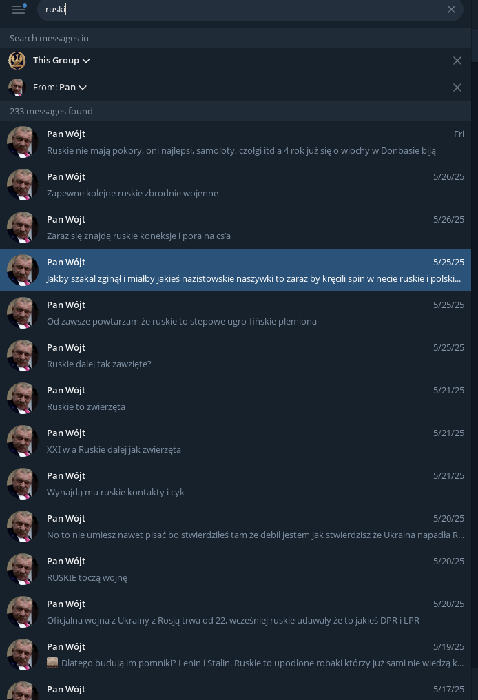 >Быдло: уу курва, ебаные русские. Хороший тупой русский: защо, это же Путин. Вывод: ты еблан тупой Я понимаю - о чём ты. Только дело в том, что в этом телеге сидят не тупые поляки. Понимаешь? Как раз такие нехило образованные. Они же не только пердолят о войне и политике. Они там за информатику базарили, про ядерную физику. Т.е. там ваще не быдло ни разу.