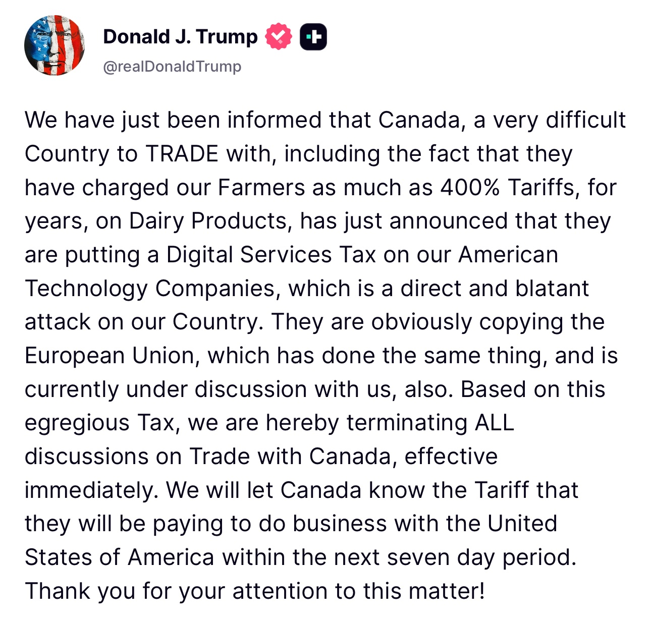 Трампу плевать на Канаду, его основной интерес это внезапно улучшение США, и ухудшение Канады как я уже написал выше не помогает улучшению США. Алсо у Трампа амбиции, поэтому если бы Канада стала ещё больше зависеть от США, в том числе в виде 51-го штата, то это было б жирной галочкой. Поэтому ждём развития событий, лично я думаю, что будет какое-то упрощение по движению рабочей силы из Канады в США.
