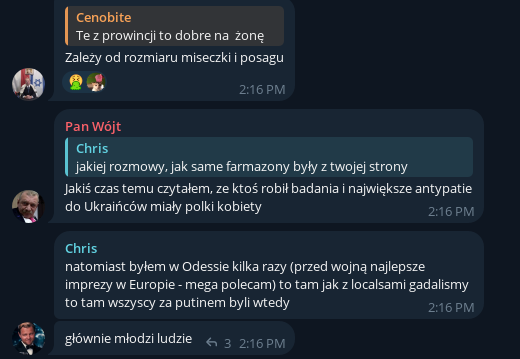 При том, что это вообще очень интересные пшеки, что они в принципе в ТГ сидят. В пшекистане, как и везде в гиропе, местные штатно сидят в цукербергозагонах - фб, инста, Вацап. А у телеги репутация мутной хуйни с наркобарыгами и хуй ещё знает кем, нормальному обычному человеку там нечего делать. Типа как Сигнал в РФ что ли или борд в торе, если тебе нужен этот мессенджер, то ты уже явно мутный и мутишь мутки, обычным людям оно просто нахуй не надо и они там не сидят априори.