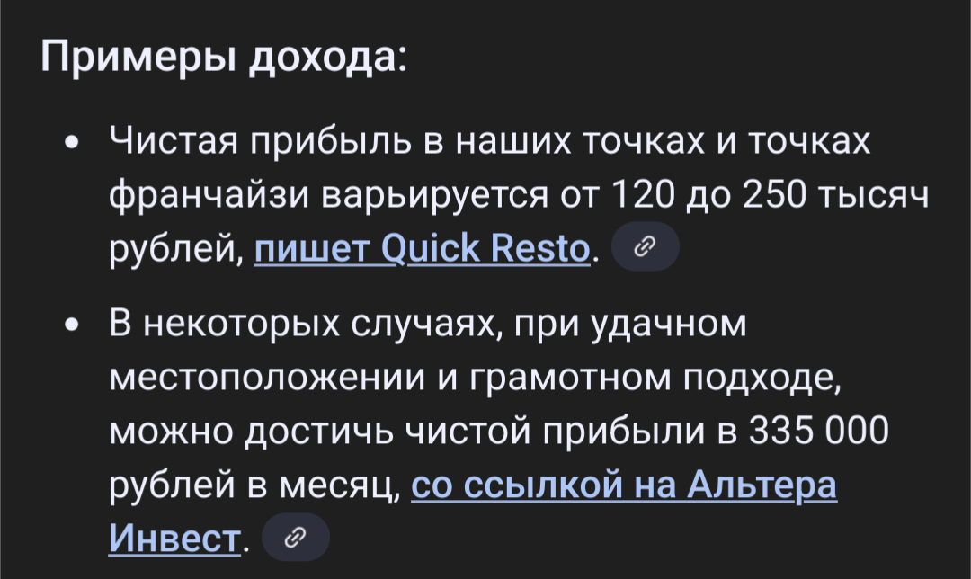 А вообще почему пользователи со значком аквафреша всегда такие озлобленные? У вас в аквафреше токсичная корпоративная культура или изначально туда таких отбирают? >>1220788 > Сколько твоих обоссаных зарплат будет с трех точек? Судя по Гуглу, одна зарплата сеньора, это дай бог. Прикол в том что сеньор В минус уйти не может, ну и исходный капитал ему не нужен. Ну я тебя понял В общем надо не просто бизнес свой открыть а прям ПООСТО свою франшизу вот тогда-то ты приблизишься по уровню скорости заработка денег к просто какой-то обычной тёлке берущей оплату за базовые функции организма.