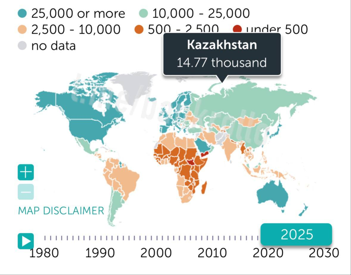 Казахстан обошёл Россию по величине ВВП на душу населения в 2025 году — данные Международного валютного фонда. Этот показатель в Казахстане составит $14,77 тысячи, а в России $14,26 тысячи. До этого в рейтинге стабильно лидировала Россия среди стран СНГ.