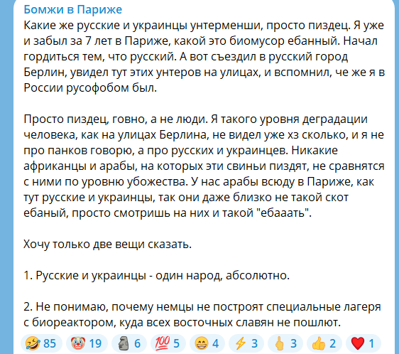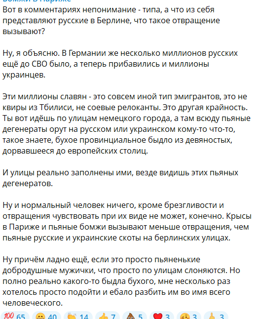 >>1221701 Шуток кроме, звучит правдоподобно. Прошлой осенью ездил по Эмиратам, и как-то повезло в Дубае провести большую часть времени в преимущественно азиатских кварталах. Так за пару недель обнаружил следующую закономерность: если по улице идёт группа людей или просто парочка и ОЧЕНЬ ГРОМКО ОРЁТ друг на друга, это точно будут мои дорогие соотечественники. Те же индусы-пакистанцы-афганцы куда спокойнее себя ведут, не говоря уже про филиппинцев или тайцев.