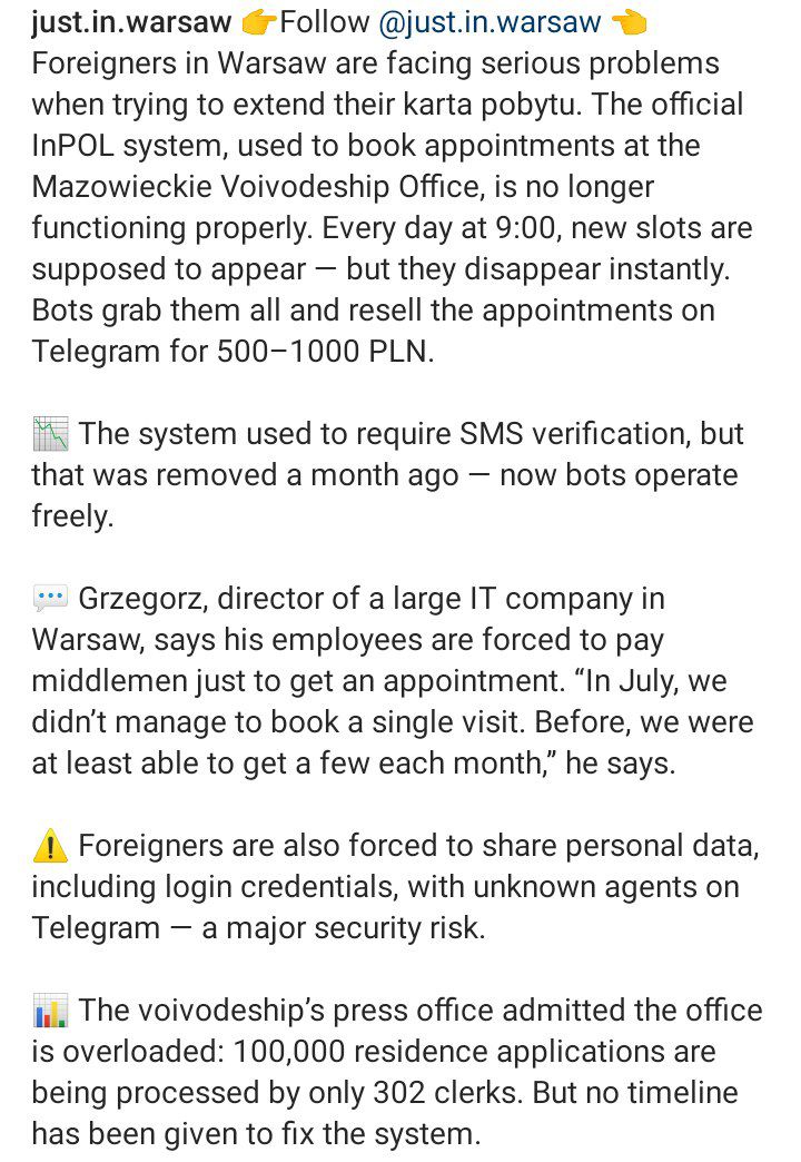 Дисклеймер: >+ + Никаких обсуждений геополитики! Максимум, только внутренняя польская политика! Модератор должен забанить троллей за офтоп!!! + + Идиотская пыническая война идёт уже третий год, обладателям пынеподданства нужно иметь в виду существующие и потенциальные иммиграционные ограничения. Сильнее всего перекрыт кислород с выдачей почти всех типов виз и въездом туристов, по факту прямые пути старта трудовой иммиграции в Польшу с красным двуглавым паспортом сейчас отсутствуют. Вкатившуюся до гойды немногочисленную российскую диаспору систематически не репрессируют и о депортациях/непродлениях ВНЖ речи нет, но могут вылезать отдельные неприятные моменты типа взбрыкнувшего банка Сантандер или якобы бытующих валовых отказов MSWiA в покупке земли. У обладателей гражданства Беларуси всё гораздо легче, а гражданства Украины - вообще довольно существенные привилегии относительно остальных иностранцев.