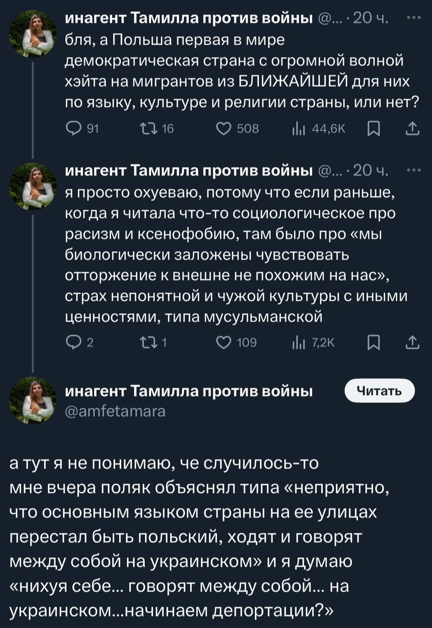 >>1230464 Возможно, знаю даже больше среднего, т.к. помимо прочего буквально биоотношаюсь с укротян. Понятно, что спердоляционные настроения не вчера появились, у поляков всегда отношение было к ним как к чуркам в рф, но до поры был какой-то консенсус в обществе, что это нельзя так активно проявлять и явно об этом говорить. Эксцессы бывали, но именно что эксцессы. А после выборов тут прям явная перемена именно что в гласном и негласном отношении случилась, теперь говорить об этом - в целом можно, и власть сама первая начнет такие темы обсуждать, а не щемить за это.