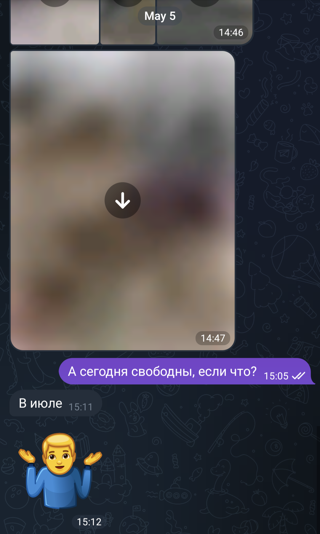 >>1221838 >А потом он неделю может сосать бибу потому что его не выберут Теорию понял, теория крепкая - не подкопаешься. Теперь к практике - в начале мая мне понадобилась механизированная помощь на участке, и я нашёл чувака с минитрактором за 2к в час (+ отдельно оплачивается доставка). Диалог на скрине
