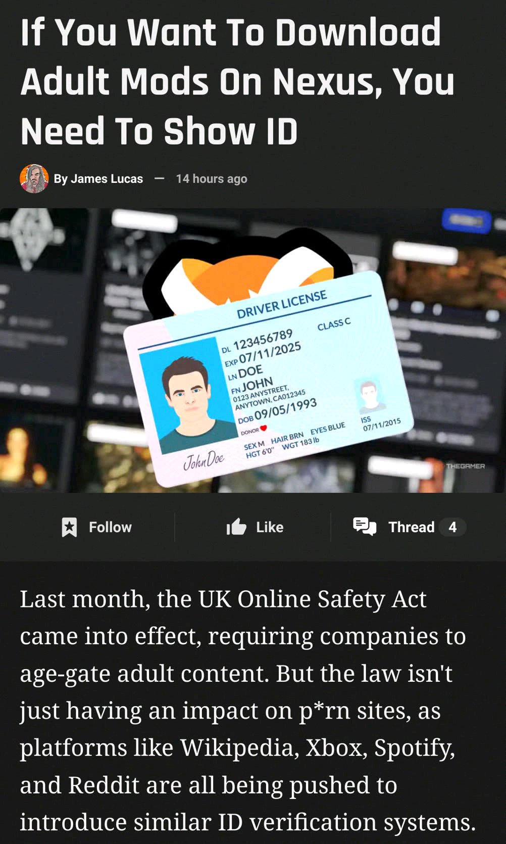 >>1227815 Чтобы вздрочнуть на некоторых сайтов во Франции тоже айди просят, это мировая практика. В РФ для дрочки просят подтвердить возврат логином через ВК.