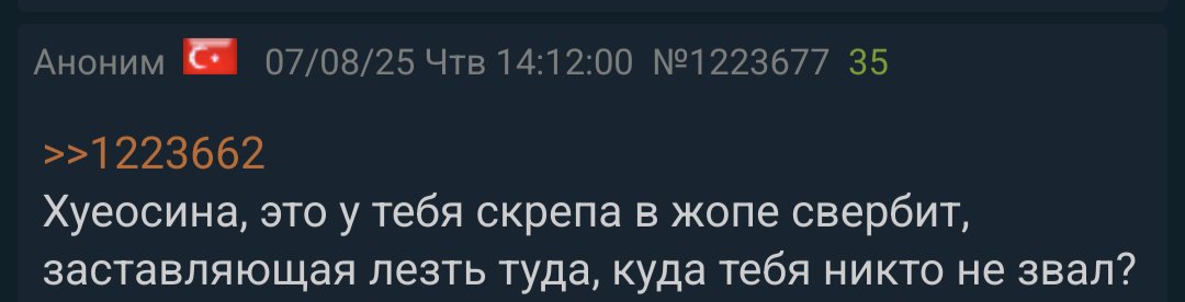 >не считаешь из-за этого, что в 2024 на Сирию напала Турция? А почему у меня должны быть проблемы с надением Великой Турции на пынинского протыка? Спок, пидоран. Сиди и жди нож в псину.