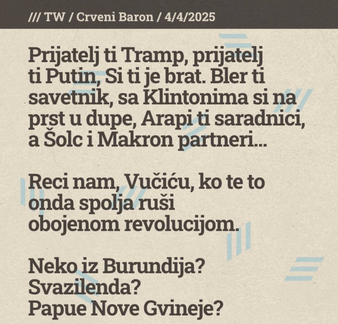 Олсо что за хуита происходит в Белграде? Видел сегодня видос где по толпе холостыми стреляют, люди бегают, голосят. Что случилось?