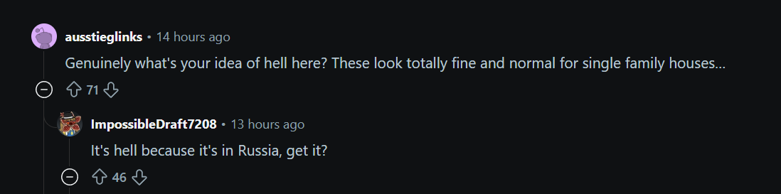 На Реддите вновь обосрали русофобскую блядину, восхитившись русскими домами в пригороде
