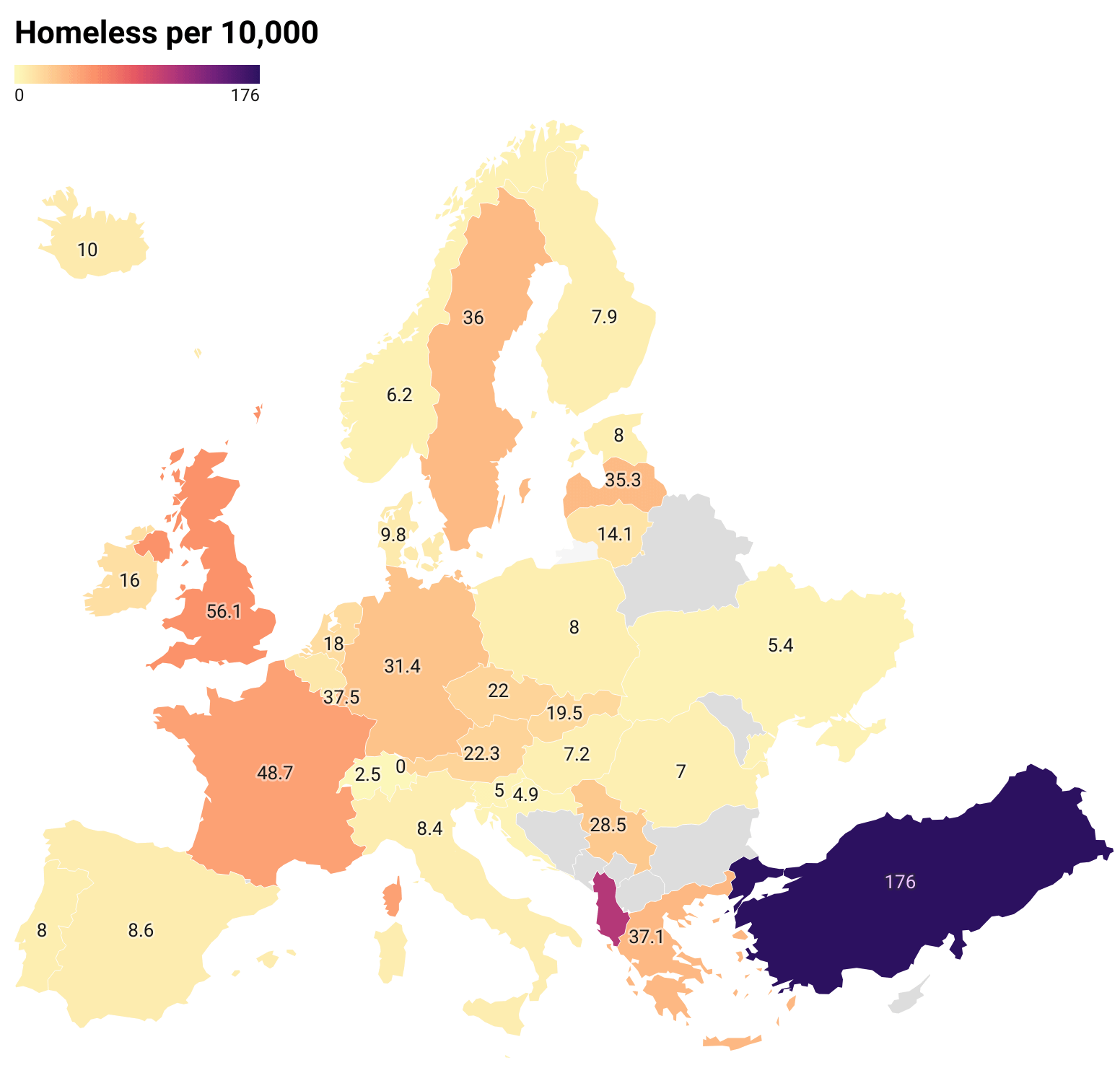 In Latvia, 2022 saw the rate of police-recorded intentional homicides per hundred thousand inhabitants at 4.05. This is the lowest figure recorded since 2014 and sharply down on 2021's equivalent figure of 5.18.